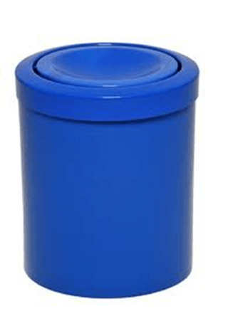 Lixeira cilíndrica com tampa meia esfera, fabricada em polietileno de alta densidade. Com capacidade de 13 litros.