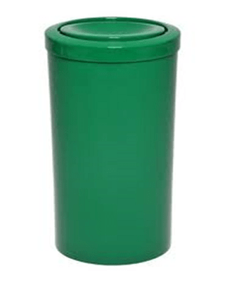 Lixeira cilíndrica com tampa meia esfera, fabricada em polietileno de alta densidade. Com capacidade de 23 litros.