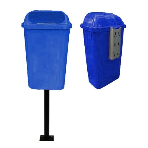 Lixeira de chumbar individual com suporte para 01 papeleira de 50 litros. Fabricada em polietileno de alta densidade (injetada) e com corpo e tampa aditivado contra raios ultravioletas. Possui tampa com fechadura acionada por chave alumínio e apagador de cigarros em aço Inox. Suporte em tubo de aço carbono galvanizado. Garantia de 01 ano.