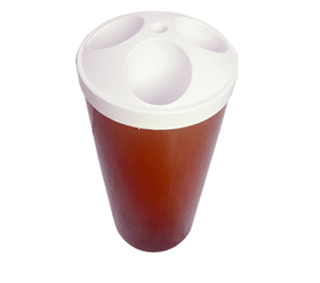 Coletor de copos descartáveis com capacidade para 600 copos, sendo 03 tubos para copos de água e 01 tubo para copos de café. Fabricado em polietileno de alta densidade. Corpo vermelho com tampa branca.