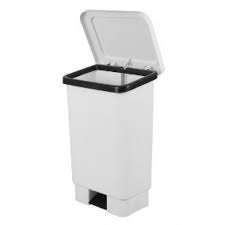 CESTO - COLETOR - LIXEIRA quadrada/retangular com pedal fabricada em polietileno de alta densidade. Com aro para fixação de saco de lixo e capacidade de 50/60 litros.