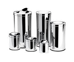 CESTO - COLETOR - LIXEIRA cilindrica/redonda com tampa flip top - basculante - meia esfera em aço inox. |